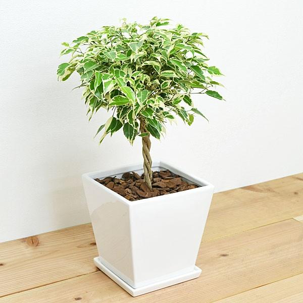 観葉植物 ベンジャミン スターライト 斑入り スクエア陶器鉢植え Skan フラワーコーポレーション 通販 Yahoo ショッピング